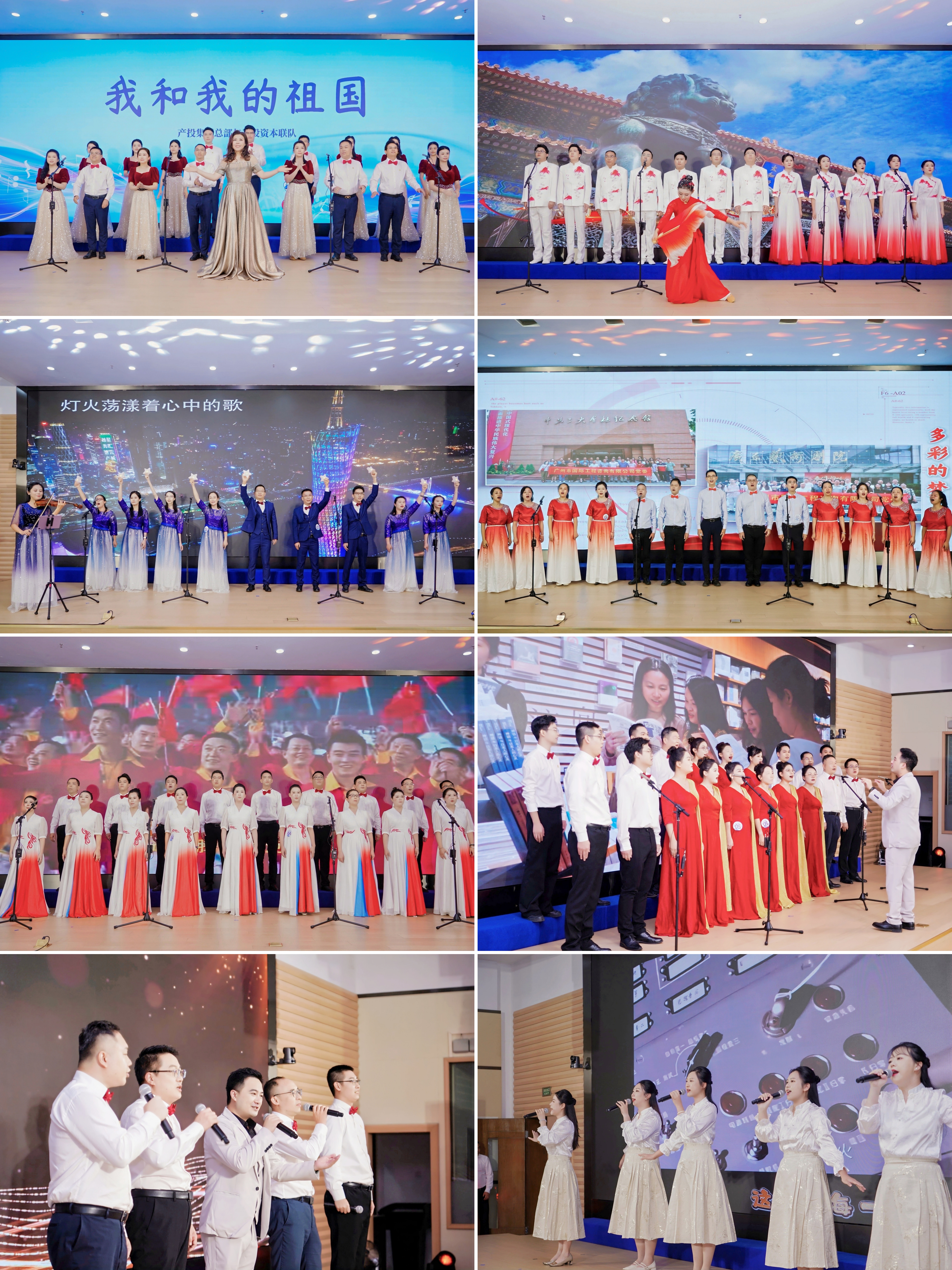 自歌唱节启动以来,这份“以歌传情、以声聚力”的邀约,迅速点燃了集团上下的热情。集团总部、各直属企业及园区企业积极响应,产投集团领导积极参与到联系企业合唱队伍中,从初选到晋级,每一轮比拼都充满力量。最终8支参赛队伍和10组实力选手脱颖而出,以“庆国庆・迎全运”为核心脉络,用歌声传递产投力量,为羊城迎全运、祖国庆华诞奏响昂扬乐章。