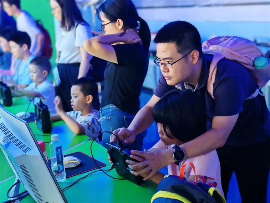 在神舟十五号归航当天,活动举行了“集体追星宣誓仪式”,职工及其孩子们一起动手制作并发射“水火箭”,参观航天科普博物馆聆听我国航天事业发展历程,坐上VR模拟飞行器体验“太空漫游”,使用无人机模拟器感受人工智能的魅力......通过一系列沉浸式的体验,激发孩子们对航天的认知和兴趣,为孩子们播下航天“种子”,启迪航天梦想,见证中国航天前行的每一步!
