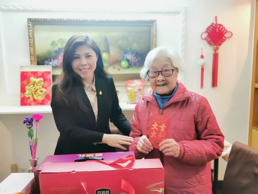 过去一年的崭新发展变化,送上慰问品,并祝福黎老身体健康、事事顺心、老有所乐。