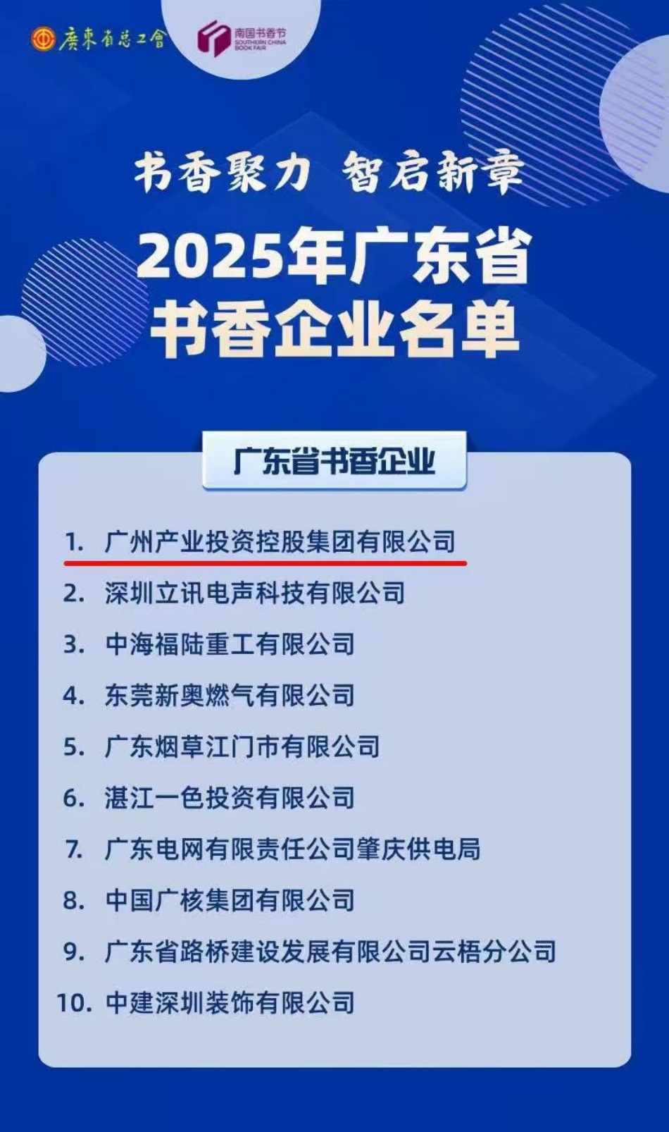 被广东省总工会授予2025年“广东省书香企业”称号,成为本次评选活动中广州市唯一获此殊荣的企业。
