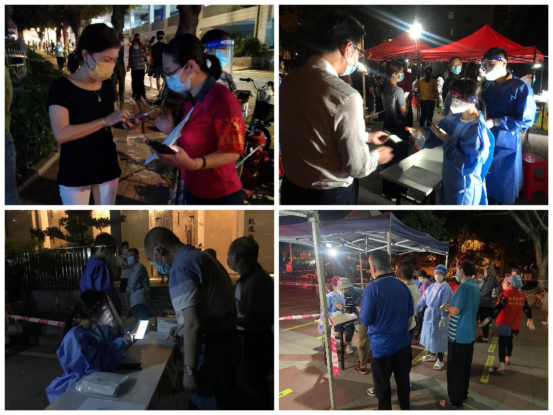 根据市疫情防控“组团式”对口支援工作部署,成人色情网 4月6日召开专题会议进行安排,迅速组建支援海珠区常备队伍。4月9日上午11点,接到支援海珠区的工作任务后,1个小时内马上组织36人的党员突击队和36人的预备队,由党委办公室副主任黄从良及李嘉权两名同志分别担任领队,中午1点前在沙园街、华洲街完成集结,迅速投入抗疫一线,累计协助开展核酸检测、扫楼排查、疫苗接种登记等近2万人次。当时,国资管理集团常务副总经理刘岁声正在社区服务,接到任务后午饭都没顾上吃迅速前往集结,到了以后一边吃盒饭,一边联系对接支援细节。由于核酸检测人员很多,加上天气炎热,很多排队的老人、儿童出现焦躁情绪,有的小孩甚至开始哭闹,他马上沟通街道社区,多方协调最后成功开辟一道供老人、儿童核酸检测的绿色通道,得到社区居民的一致称赞。