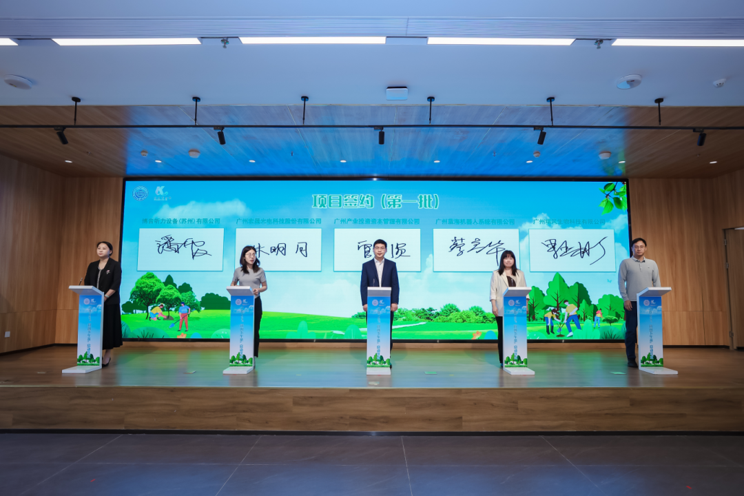 全链条科创服务体系优势,采用面对面主题分享、圆桌交流、调研考察、对接路演、政策宣讲等多种形式,结合“科创中国”・广州站等线上平台,深入打造系列特色活动,全面覆盖广州11个区及港澳等地区。启动仪式当天,分别举行了基金项目签约、服务站揭牌、技术合作项目发布等重磅活动。