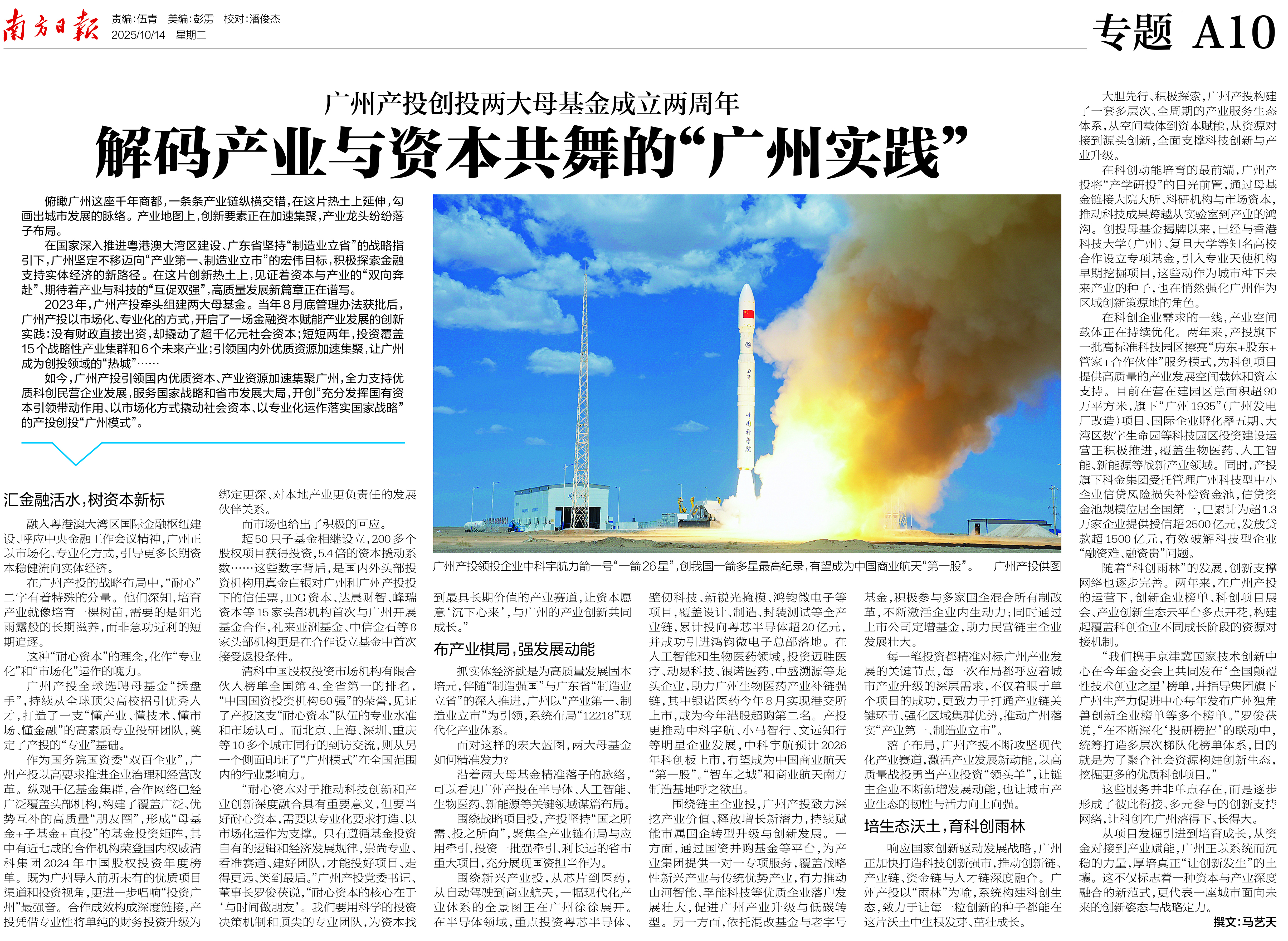 以市场化、专业化的方式,开启了一场金融资本赋能产业发展的创新实践:没有财政直接出资,却撬动了超千亿元社会资本;短短两年,投资覆盖15个战略性产业集群和6个未来产业;引领国内外优质资源加速集聚,让广州成为创投领域的“热城”……