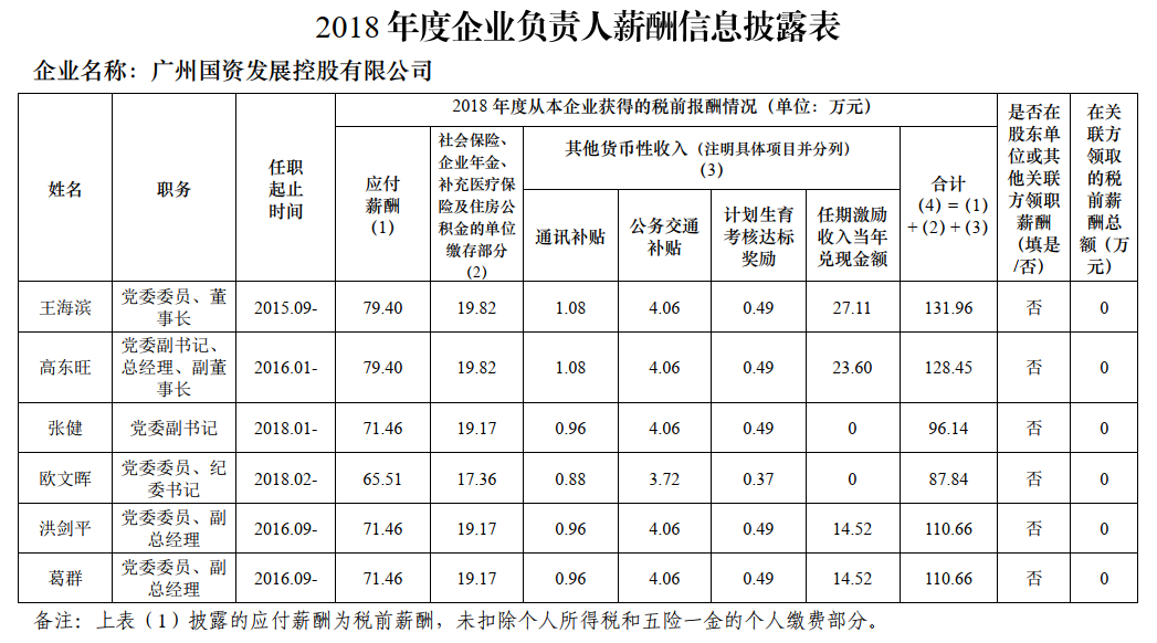2018年度企业负责人薪酬信息披露及企业工资总额信息披露